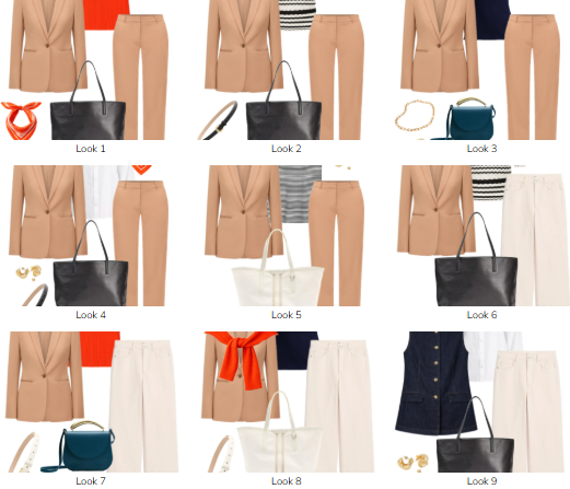 Here are a few capsule wardrobe outfit ideas you can build from these pieces: