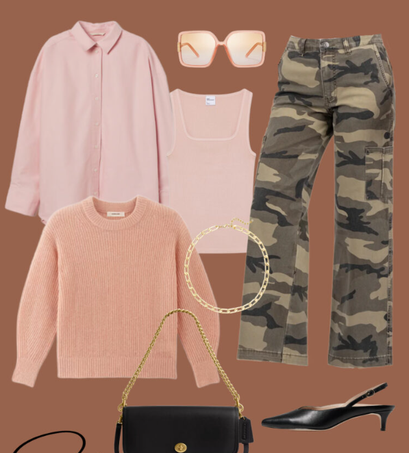 - Pair camo with delicate tops in blush or pale tones.