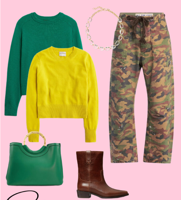 Just like animal prints, camouflage can act as a neutral — which means it pairs well with solids and earthy tones: