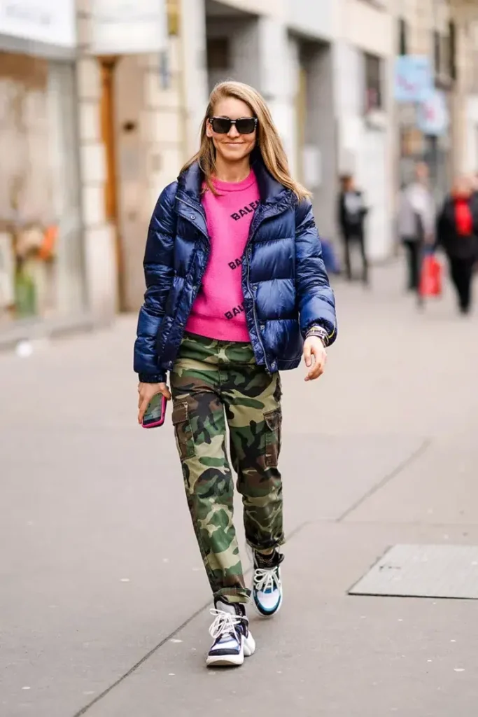 Camouflage patterns ebb and flow in popularity, but they never truly go out of style — especially when you style them thoughtfully. Today’s camo pants appear on runways and street style alike, often paired with sophisticated pieces that make the look feel intentional rather than dated.