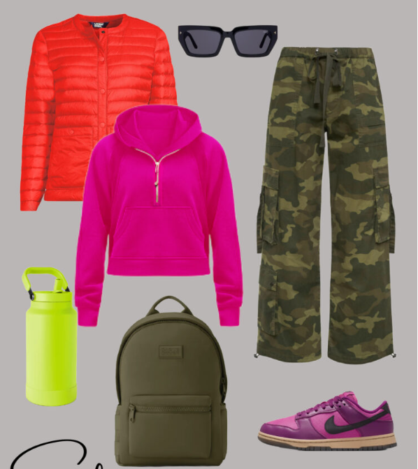 - Pair with a neutral hoodie or sweatshirt.