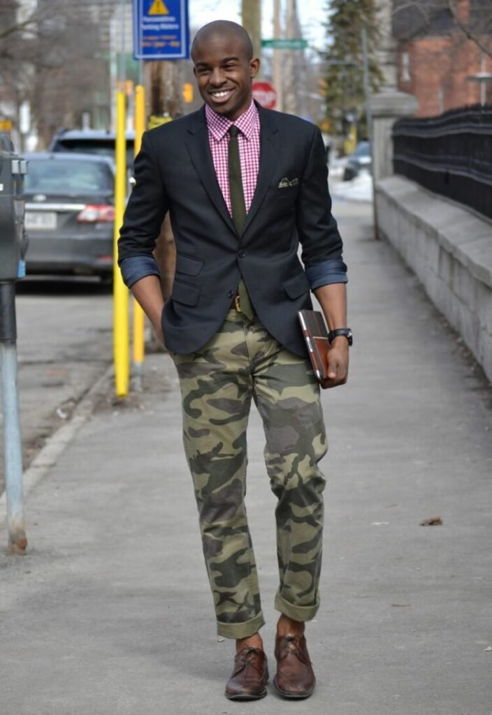 This combination highlights both the strength of the camo pattern and the sophistication of your other pieces, resulting in outfits that feel unexpectedly polished.