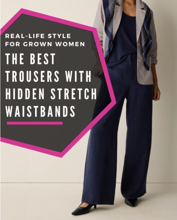 Hidden elastic pants shouldn’t automatically be baggy or slouchy. Great styles include: